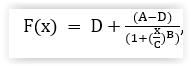 B is slope of the curve , C is the concentration of analyte where y=(D-A)/2, i.e. IC50 or EC50 and F(x) is the drug response at concentration x.