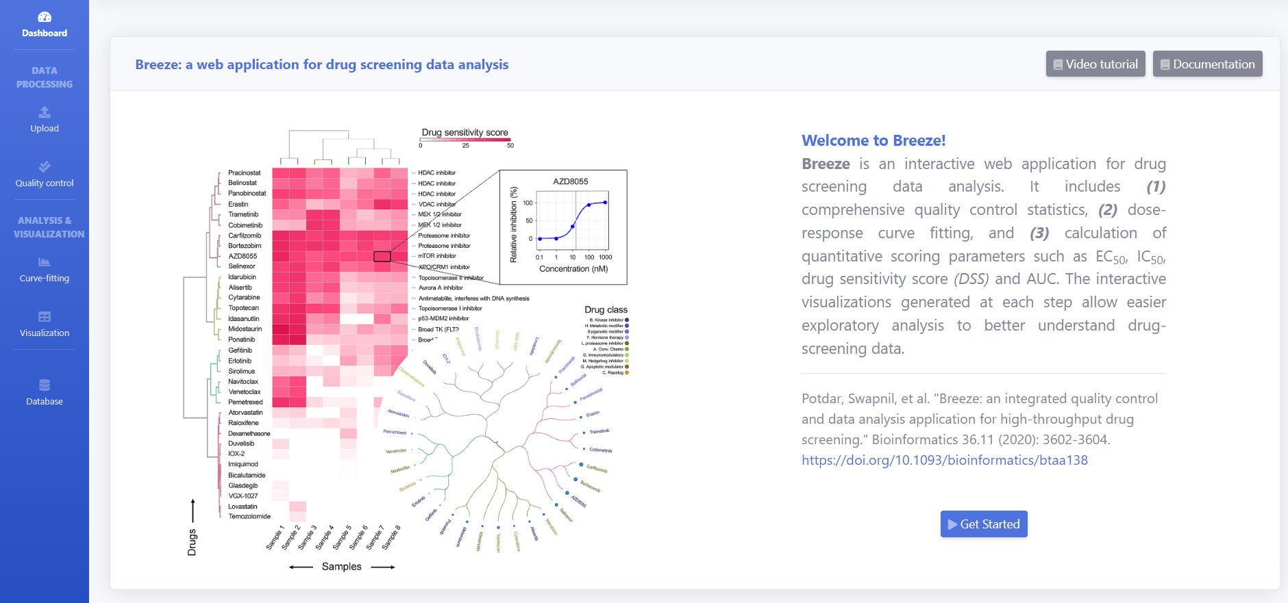 BREEZE is a web based interactive application for analyzing drug screening data and exploring publicly available curated datasets. BREEZE application combines the comprehensive quality control,