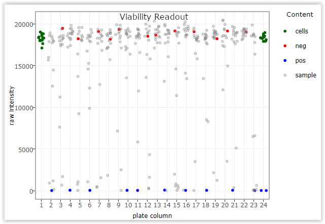 That means the wells with just DMSO will have more viabile cells and more signal/raw intensity values and on the other hand the wells which have toxic compounds like BzCl will have less number of cells and less intensity value.
