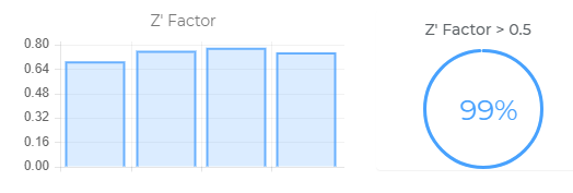 The Z' factor (called as Z Prime factor) describes the available signal window for an assay in terms of the total separation between negative and positive controls minus the error associated with each type of control. For a good assay, Z' value should lie between 0.5 and 1. Plates with the Z' value below 0.5 should be treated with caution. http://en.wikipedia.org/wiki/SSMD SSMD strictly standardized mean difference and is used as a QC parameter measuring effect sizes for the comparison of any two groups with random values.