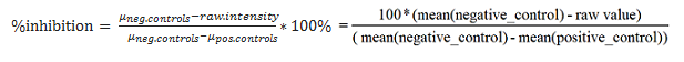negative control values in the same plate. The formula to calculate percent inhibition is as follows